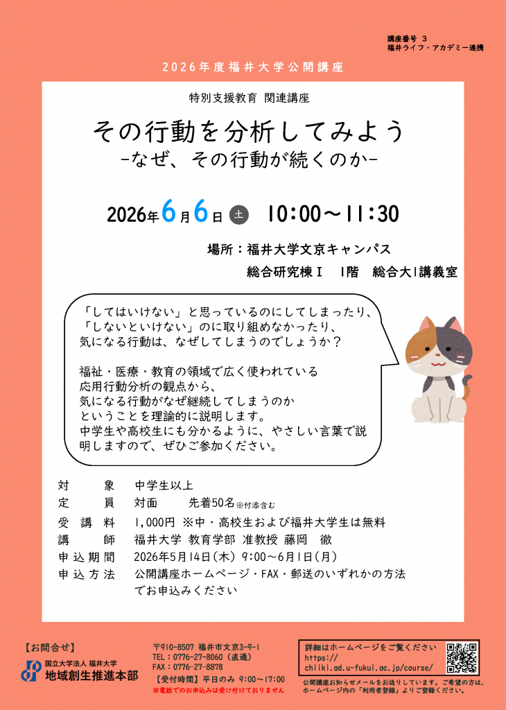 | 受講料 | 1,000円 ※中・高校生および福井大学生(院生含む)は無料 |