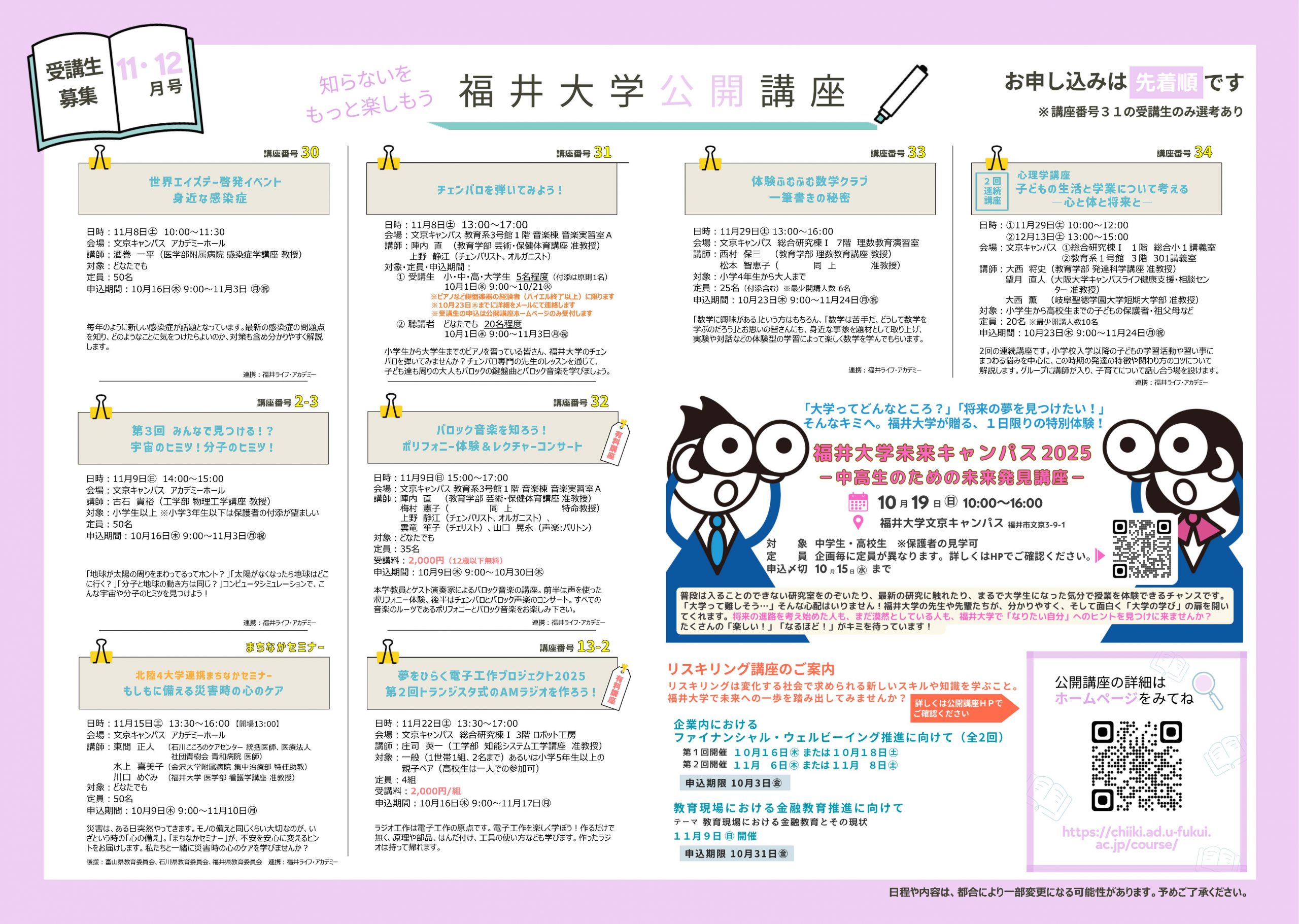 公開講座のご案内(2025年11月・12月開講) - 福井大学 地域創生推進本部